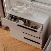 Комод «Айрон» — вместительный комод с четырьмя вместительными ящиками — универсальное решение, которое подойдёт и для спальни, и для домашнего кабинета, и для гостиной. Эргономичные черные ручки контрастного оттенка делают эту модель более изящной. Комод идеально подходит для хранения белья, одежды, аксессуаров, важных документов, украшений и мелочей. Верхнюю крышку можно использовать как дополнительную полочку для лампы.