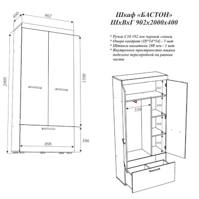 Шкаф Бастон (Эра) продается в интернет-магазине mebelin-lobnya.ru по цене 12 434 руб. Есть доставка по Лобне и Московской области. Возможность подъема на этаж и сборки уточняйте у менеджера по телефону 8(800)505-27-11.